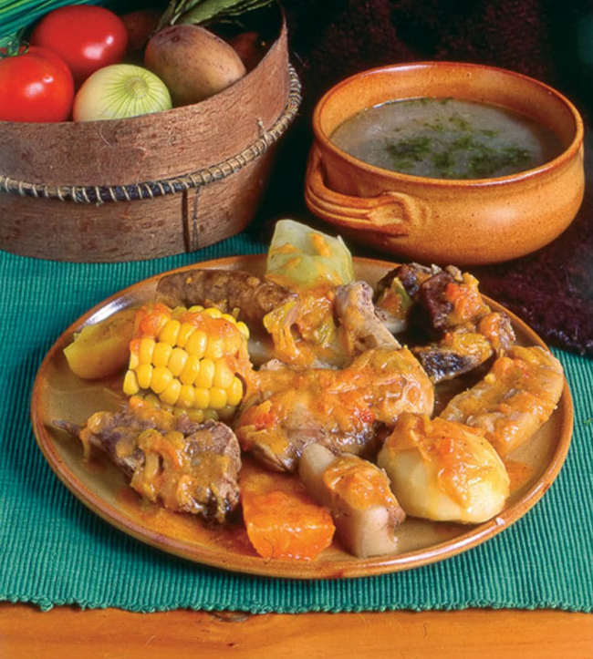 Por otro lado, el Puchero Santafereño es una de las comidas más deliciosas de la capital, puede encontrarle en la mayoría de restaurantes, se compone de mazorca, carne de res, pollo, papa sabanera, yuca entre otros ingredientes que varían de acuerdo con el cocinero, todo esto acompañado de una salsa, especie de guiso que se conoce como Hogao, con cebolla y tomate y algunas especias.